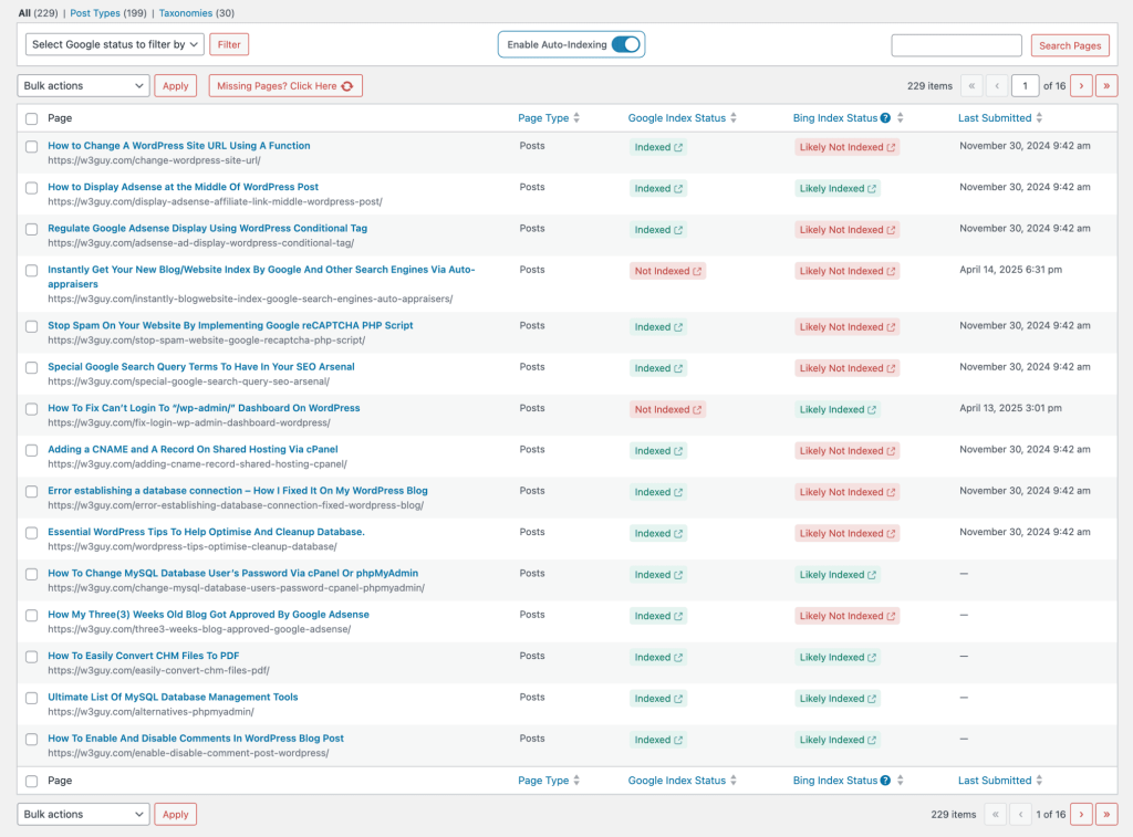- Index status checker for posts and pages